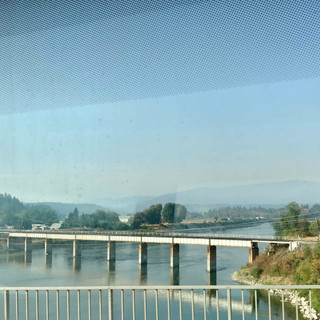 Elisa and I carefully inspect the signs as we approach the border control. I see one sign with a pictograph of a semi sized truck pointing to the right and one with a pictograph of a car and truck with a camper on it pointing to the left. So we head to the left side. Then as we get closer to the actual inspection point, I see a sign that says "High Clearance Vehicles" and it's pointing to the right. Our RV is about 13' tall - I'm thinking it may be a "High Clearance Vehicle". I start to head to the right, but then I notice that there is plenty of clearance in the lane to the left. Fortunately, there is no one behind us and only one car in front of us, so I cut back to the left lane. As I finally pull up to the border inspector - he immediately says how much he appreciates that I picked the right lane. We hand him our passports and he clicks on his computer and seems satisfied we aren't on any "most wanted" lists. He asks us about fruits and seeds. They are especially interested in apples - he says if the apples are from New Zealand or Chile - they will have to confiscate them. He also asks if the seeds have the special seal placed on them by the store where we bought them. He asks us to produce the apple and the seeds for his inspection. Elisa traipses to the fridge to retrieve the apple, he takes a look and doesn't see any sticker on them at all and he declares it safe to enter. But he would like to see the seeds, so Elisa starts heading back to the bedroom where the seeds are stowed. While she is looking for the seeds, I notice that they have a VACIS machine that they are using to inspect a large truck that has pulled up in that right hand lane. I tell him that I used to work of the company that built the machines, SAIC, and that I was instrumental in helping the inventors of the technology target it toward these types of inspections. He starts chatting back to me that he used to work for General Dynamics that was a subcontractor to SAIC and they would mount the equipment onto the trucks. While we are chatting away, Elisa is still back there looking for the seeds. In the mean time, several cars were now lined up behind me. The inspector says he doesn't need to see the seeds. He is satisfied that because I mentioned that we had the seeds, that he is confident it has the necessary documentation on it. He then waves us on through.
