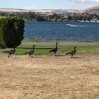 We spent the day today just hanging out along the Columbia River in Pasco, Wa. Elisa and I started out the day by visiting nearby Chiawana Park, which is situated right on the banks of the river. We went for a 2.5 mile walk on this sunny and clear day. We had a fair bit of rain last night and it did an amazing job of cleaning up the air. Yesterday, the air was thick with smoke from fires to the West. It was so bad that kids had to stay indoors. But with the rains comes a new day; one that is clear with the air smelling fresh. However, the wind is up and the temperatures are down. Today, it is in the low 70's. Warm enough for shorts, but when the wind kicks up you might be reaching for a windbreaker.